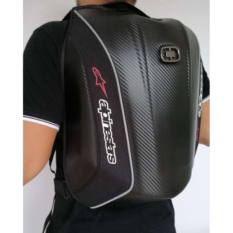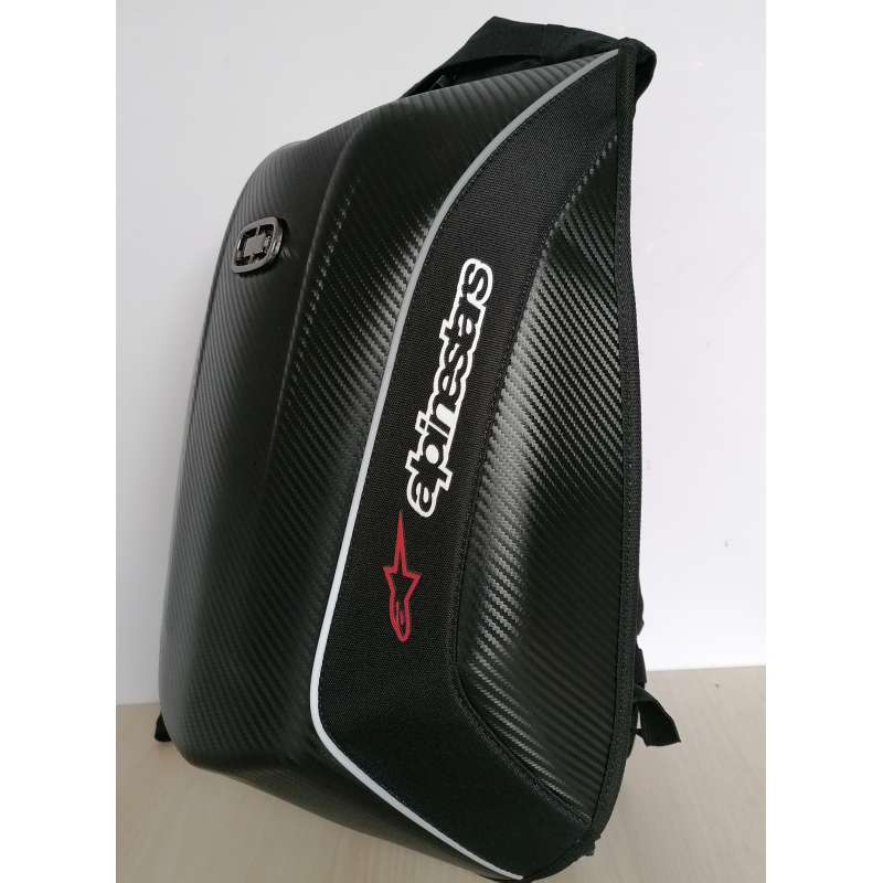 Novo u ponudi. Fenomenalan moto ranac Alpinestars . Veoma atraktivan model, sa tvrdim poklopcem . Poseduje jednu pregradu za lap top, jednu veliku pregradu i vise dzepova za sitnice. Moguce je upakovati kacigu u njega. Ranac je prelepog dizajna pa se moze koristiti u raznim prilikama, ne samo za motor . U slucaju kise iz džepa se izvlači vodonepropusna kabanica . Sve to mozete videti na nasim slikama koje smo licno slikali.
